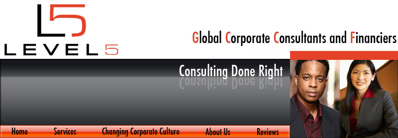 Level 5 Global Consulting Group can answer these questions for you and your company. We are more than just your consultant, we are the best consultants available, and we consider our clients to be our partners, as well as our friends. Our goal is not to make money from you but to make money with you. We succeed as we help you succeed. We will consult your corporate business concerning your structure, management, restructuring, refinancing, HR needs, and hiring mid-management positions and executive positions. We are simply a full-service corporate consulting group.